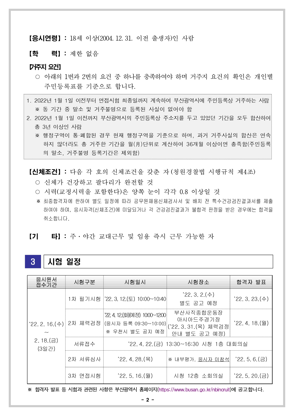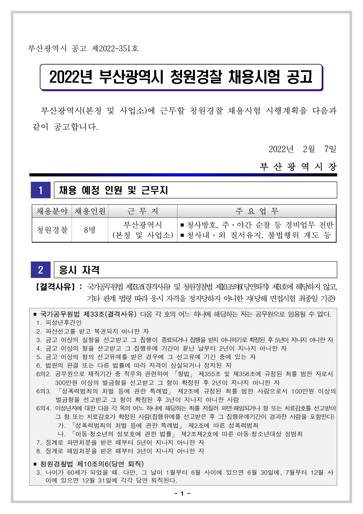 2022년 부산광역시 청원경찰 채용시험 공고입니다.