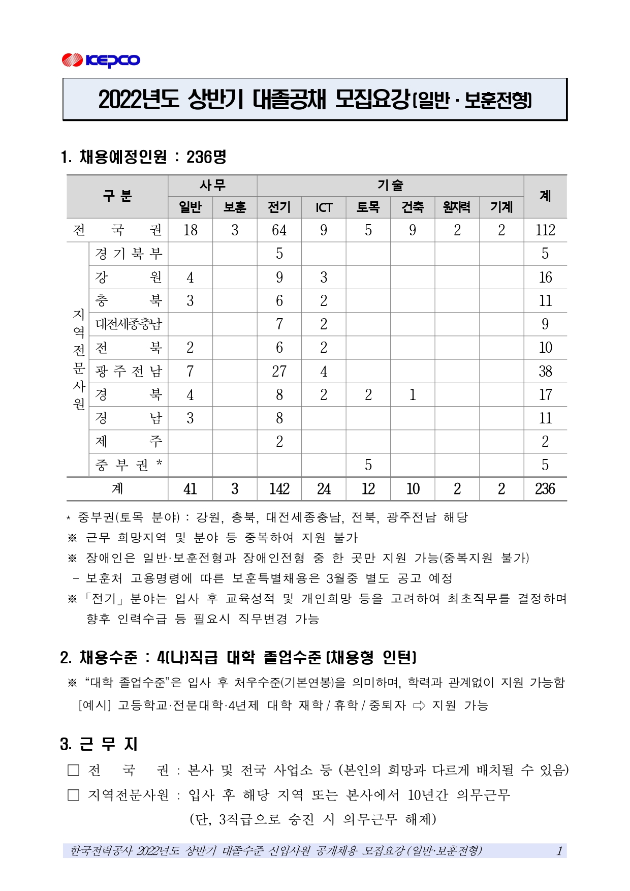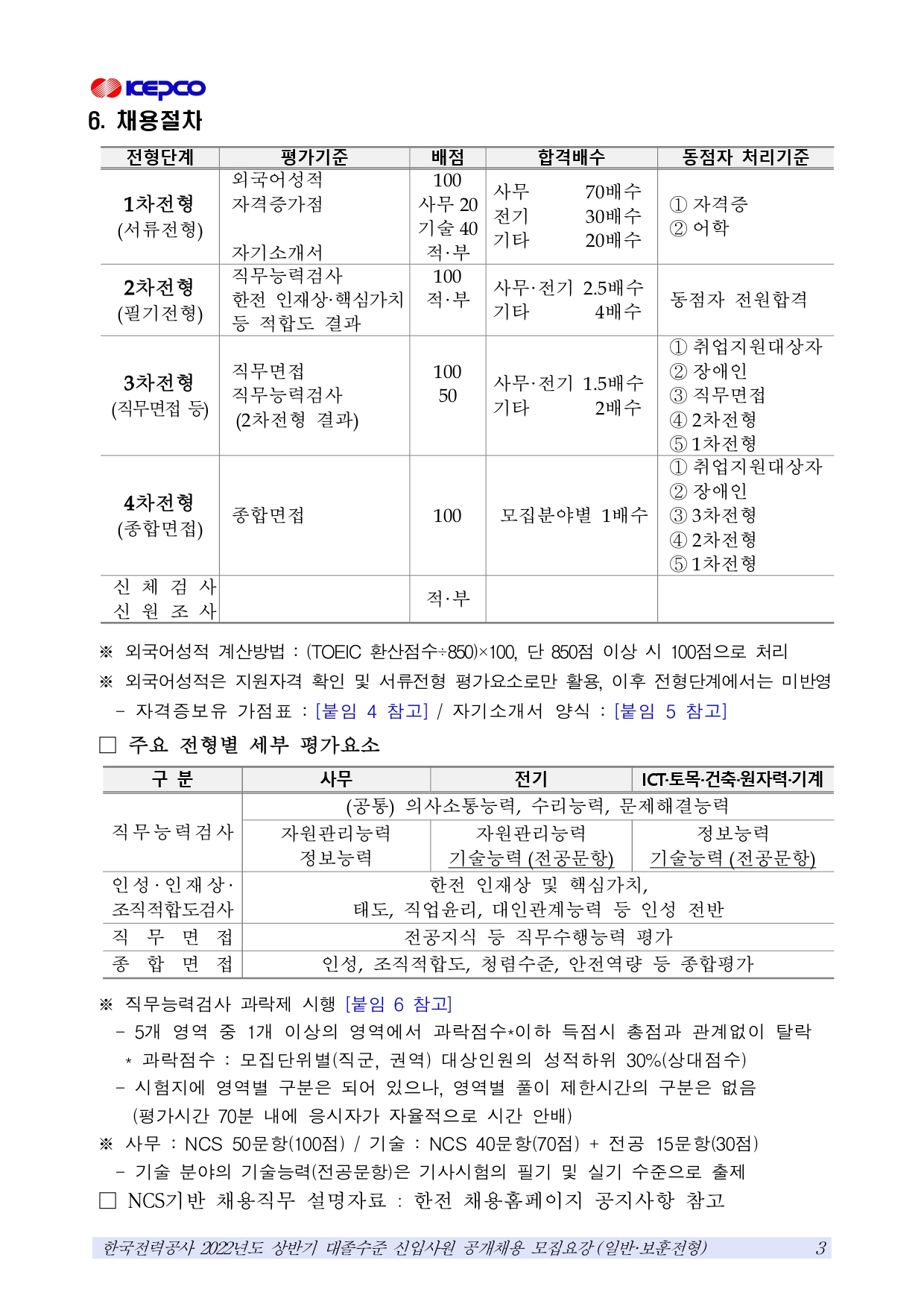 2022년도 상반기 한국전력공사 대졸공채 모집요강(일반·보훈전형)
