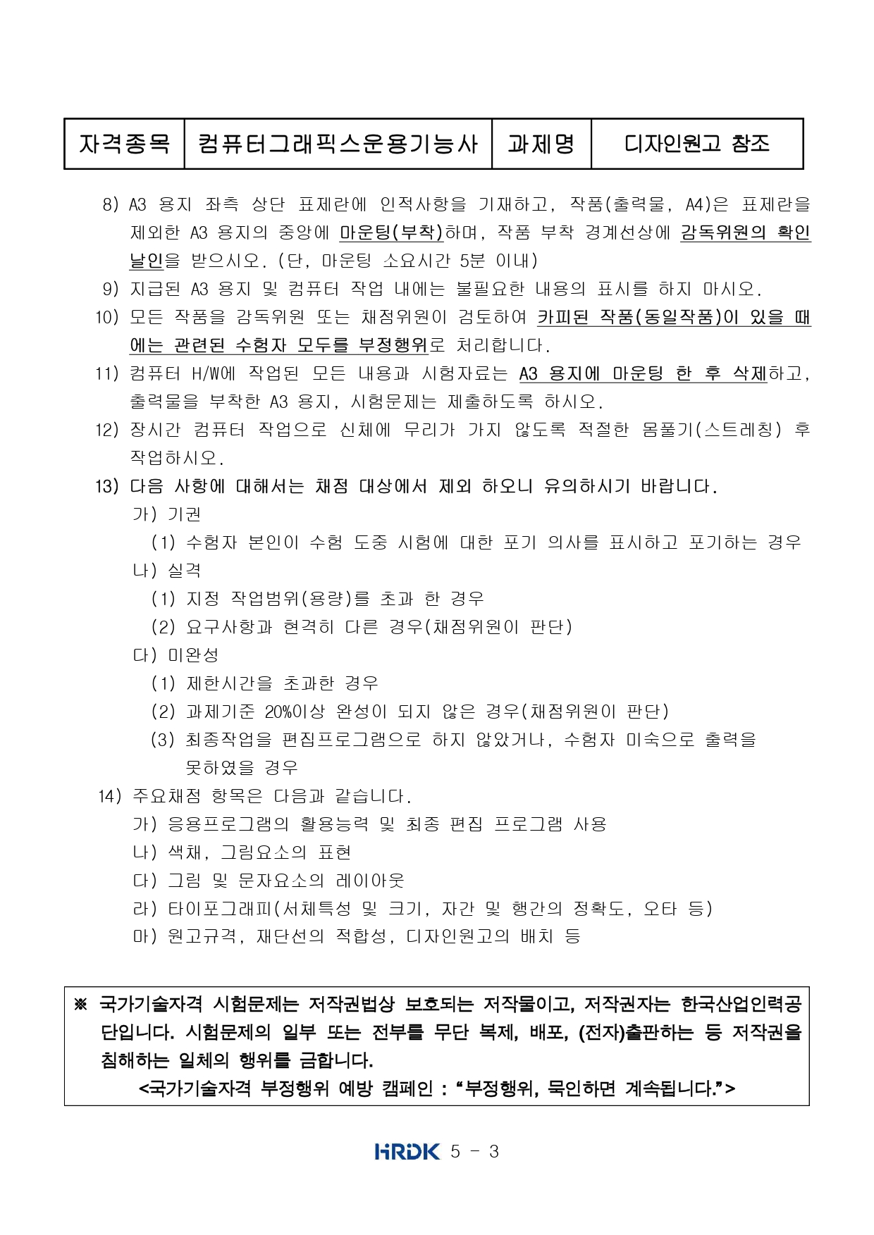 - 실기 : 컴퓨터그래픽스운용실무. ⑤ 검정방법