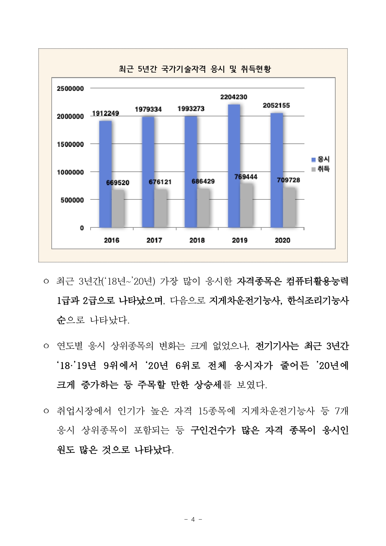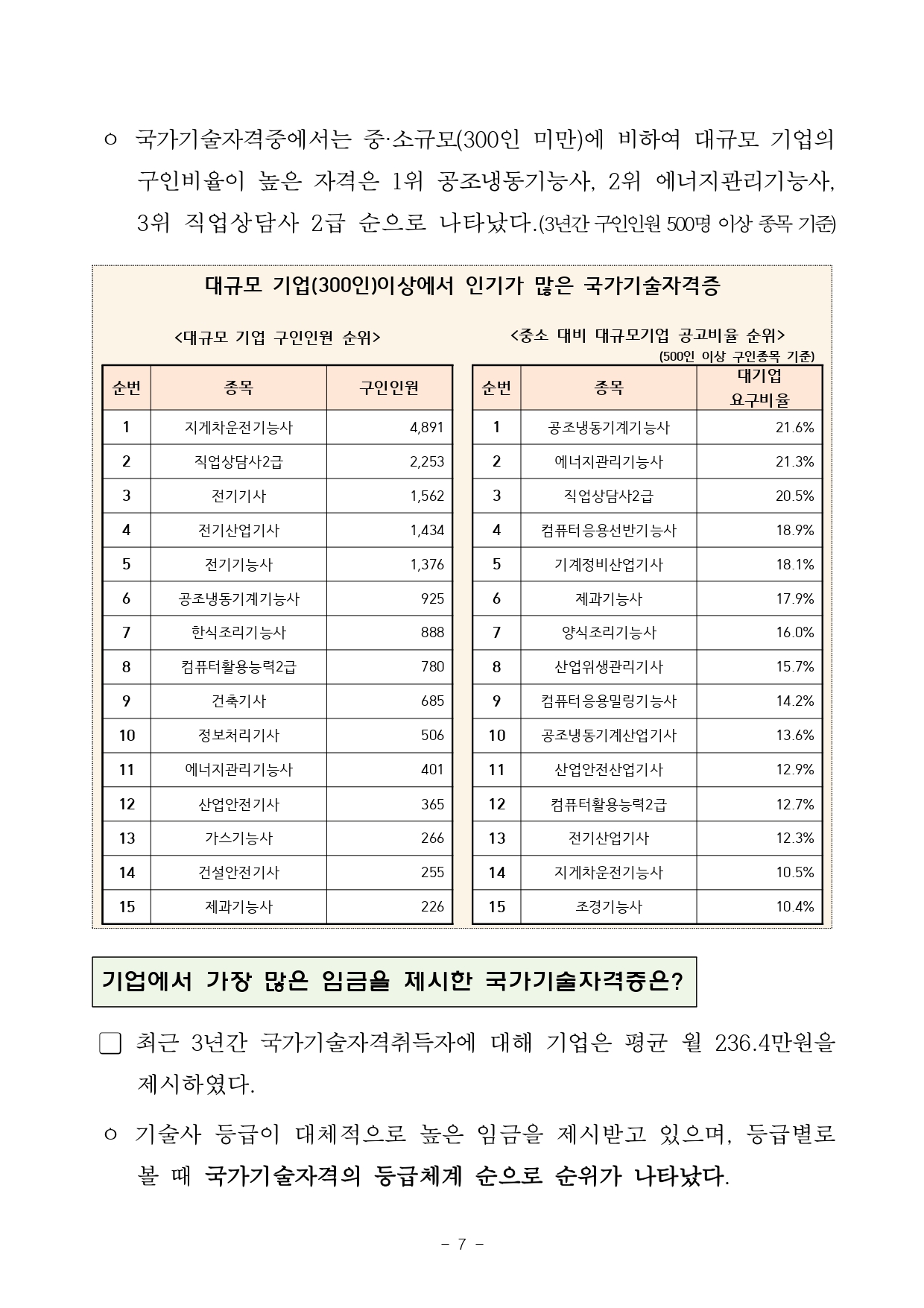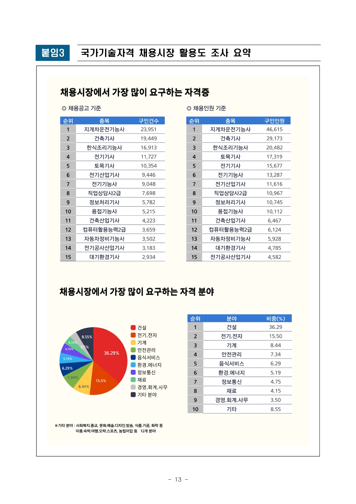 국가기술자격 종목별 채용시장 활용현황 및 인기 자격증