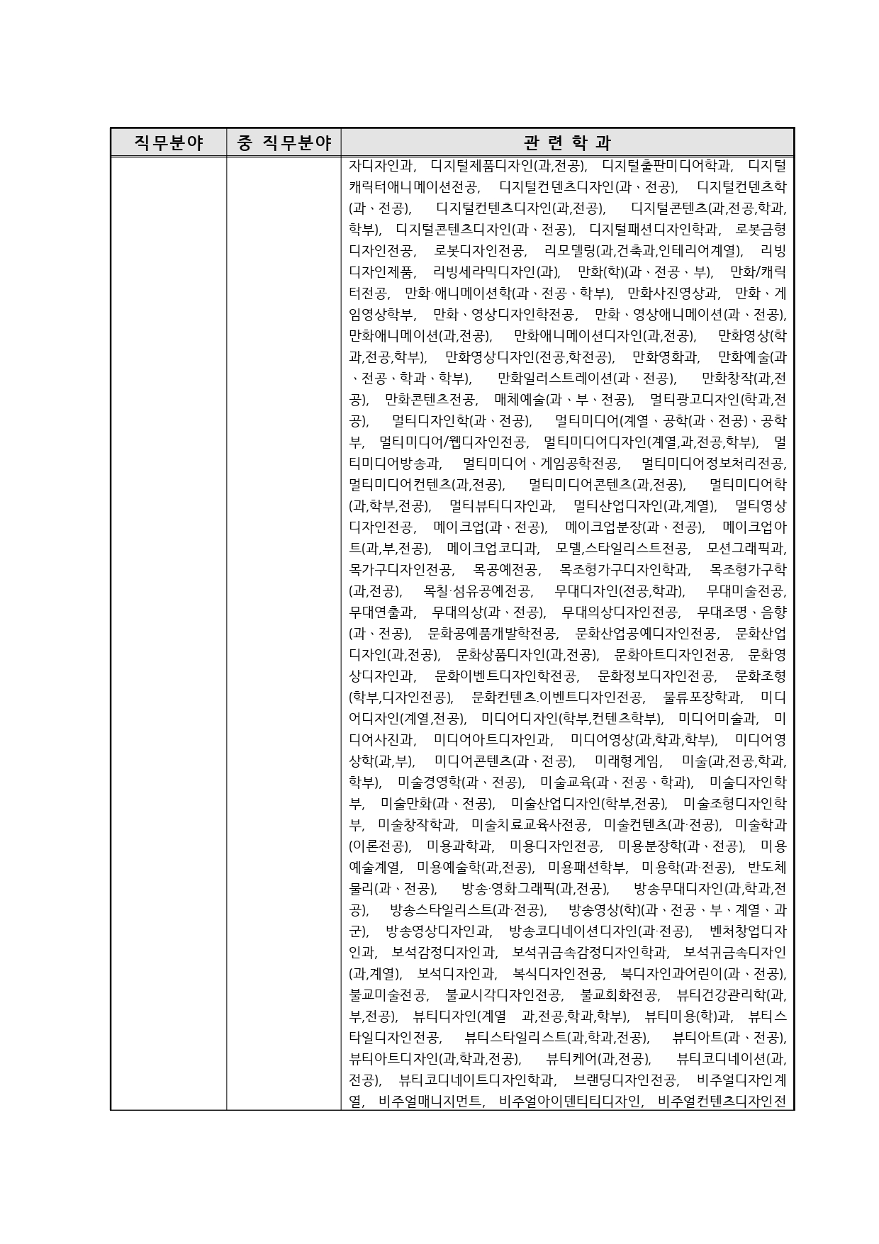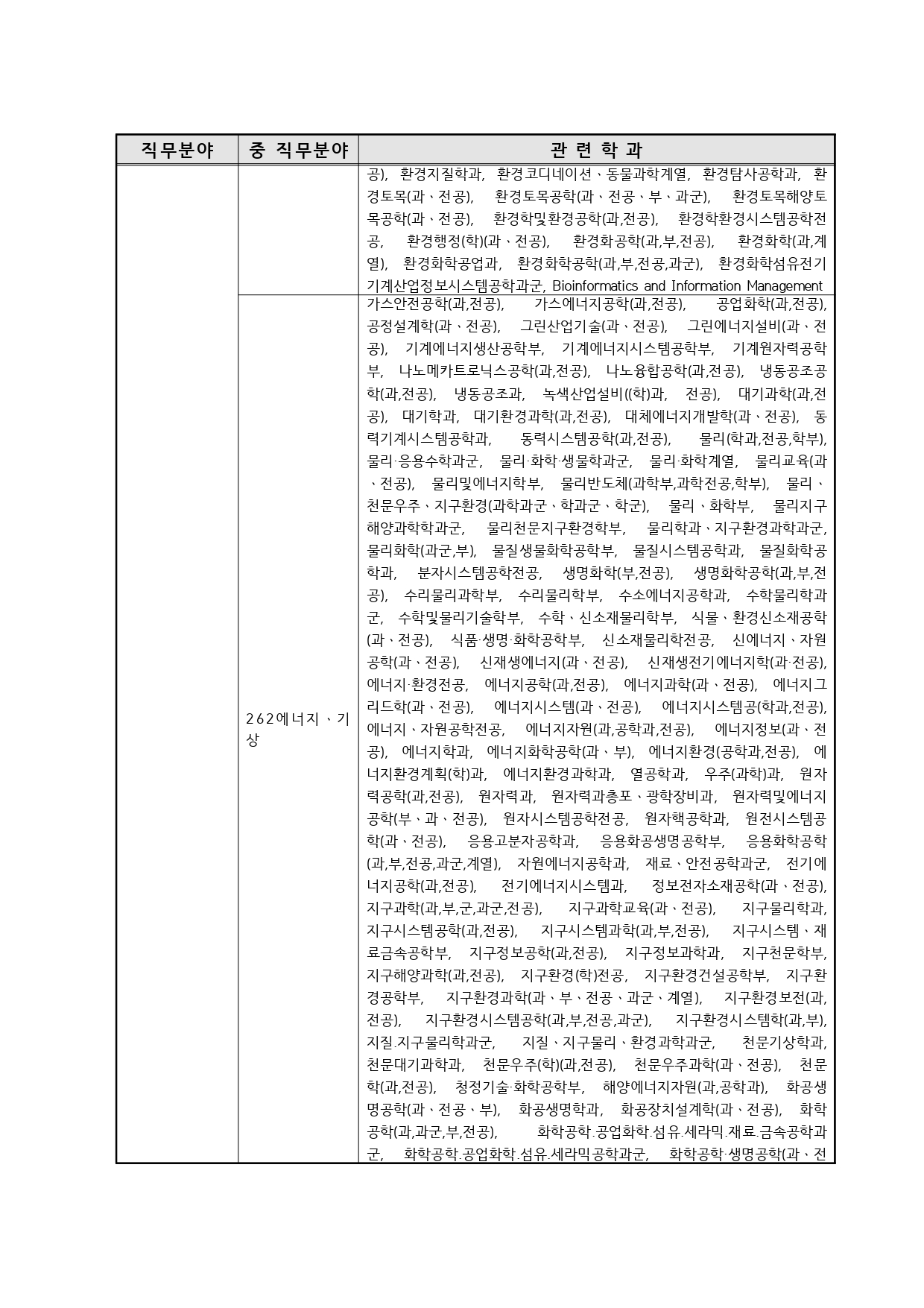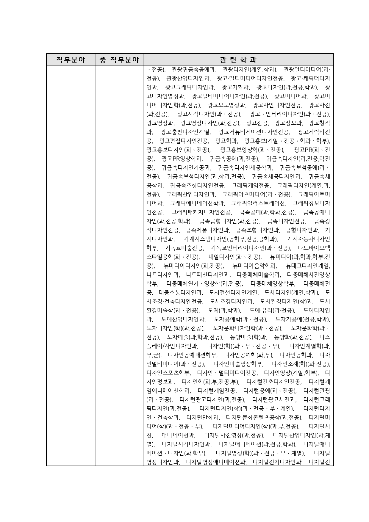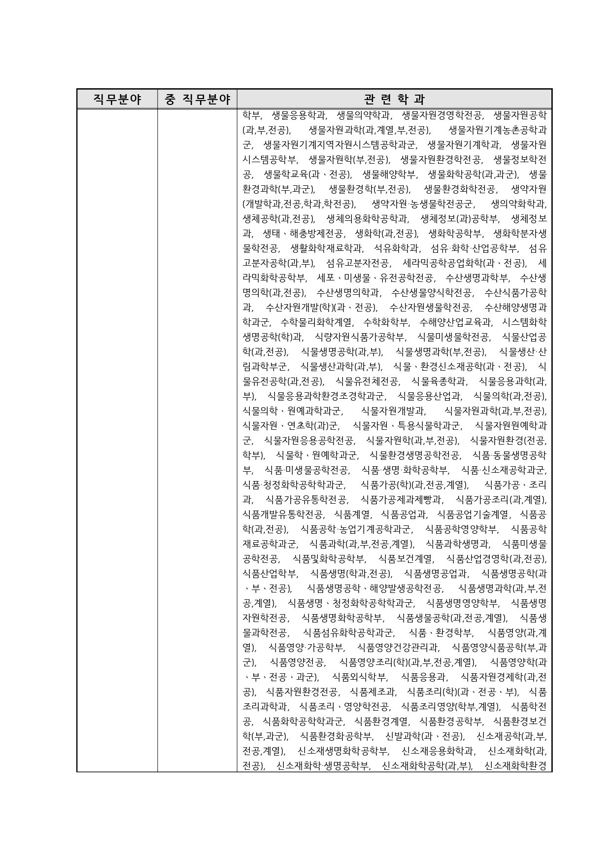 국가기술자격의 종목별 관련학과 안내.