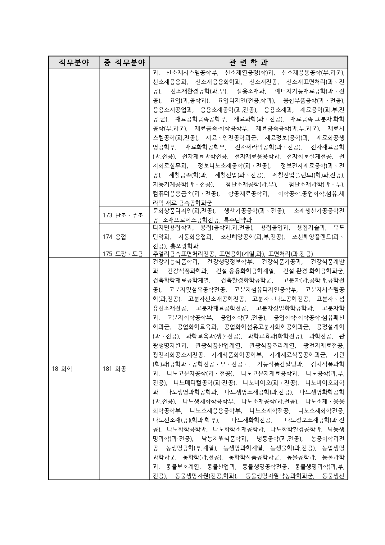 국가기술자격의 종목별 관련학과 안내