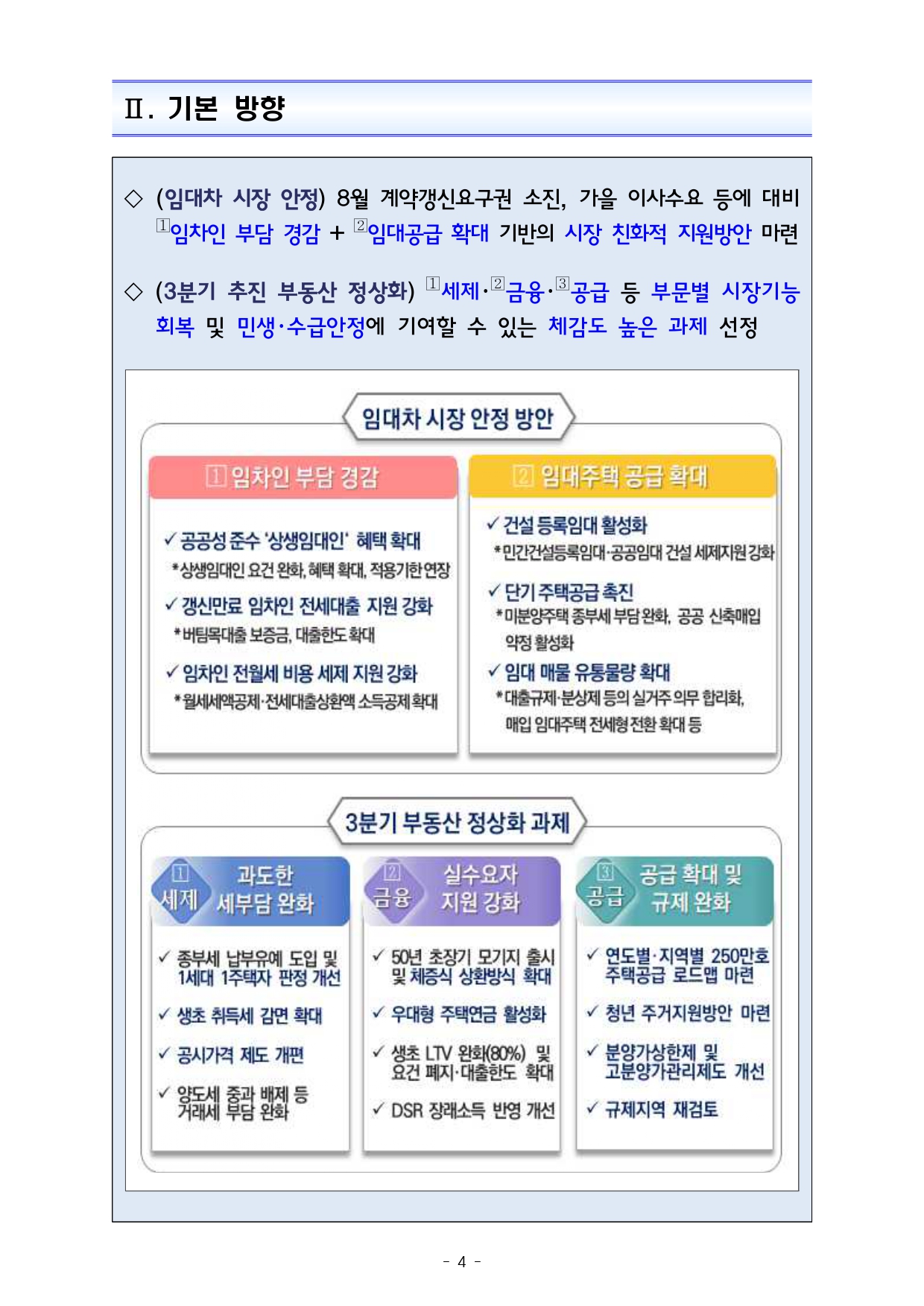 정부 임대차시장 안정화 방안 및 3분기 추진 부동산 정상화 과제