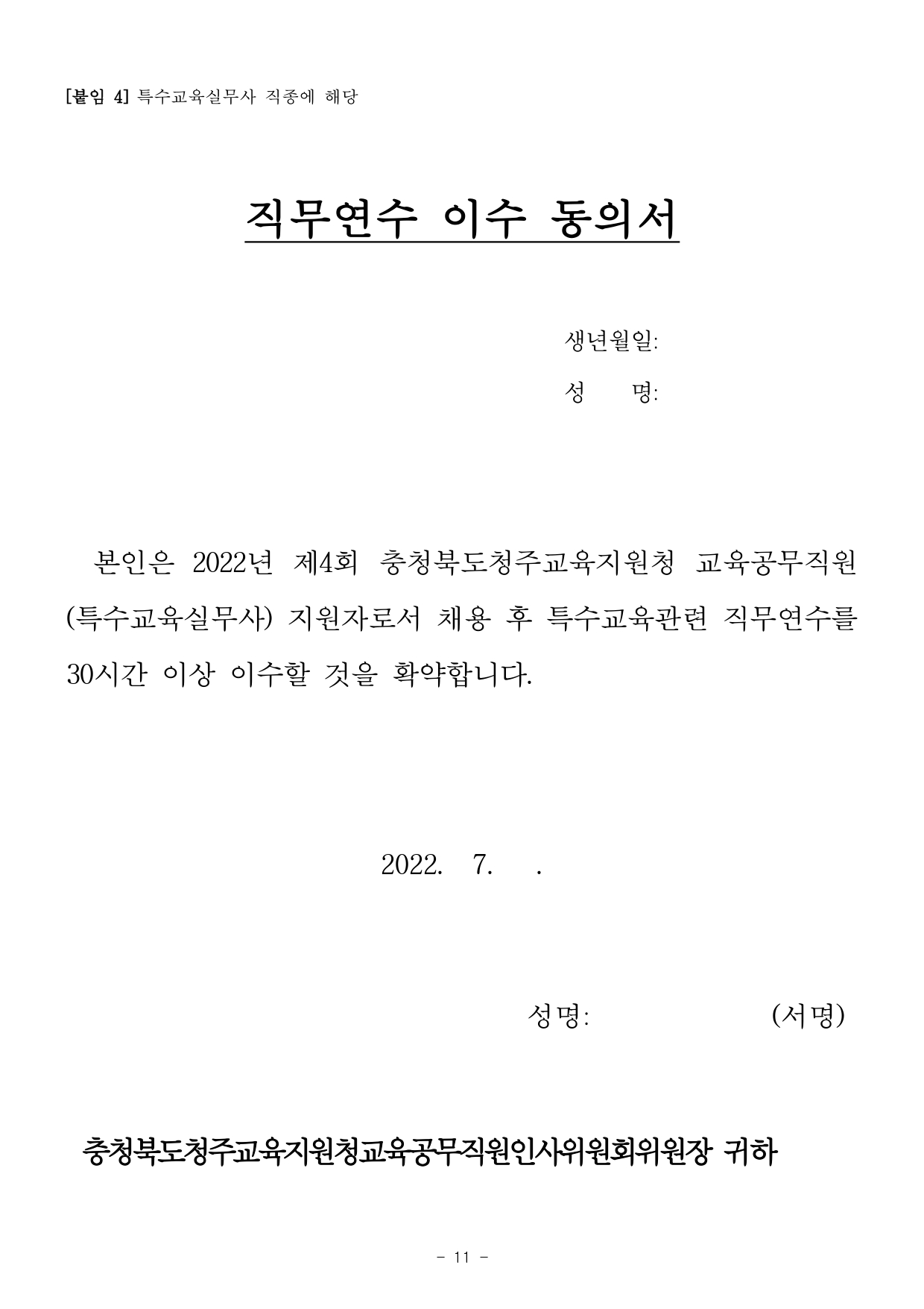 2022년 제4회 충청북도청주교육지원청 교육공무직원 공개경쟁채용시험 공고.hwp