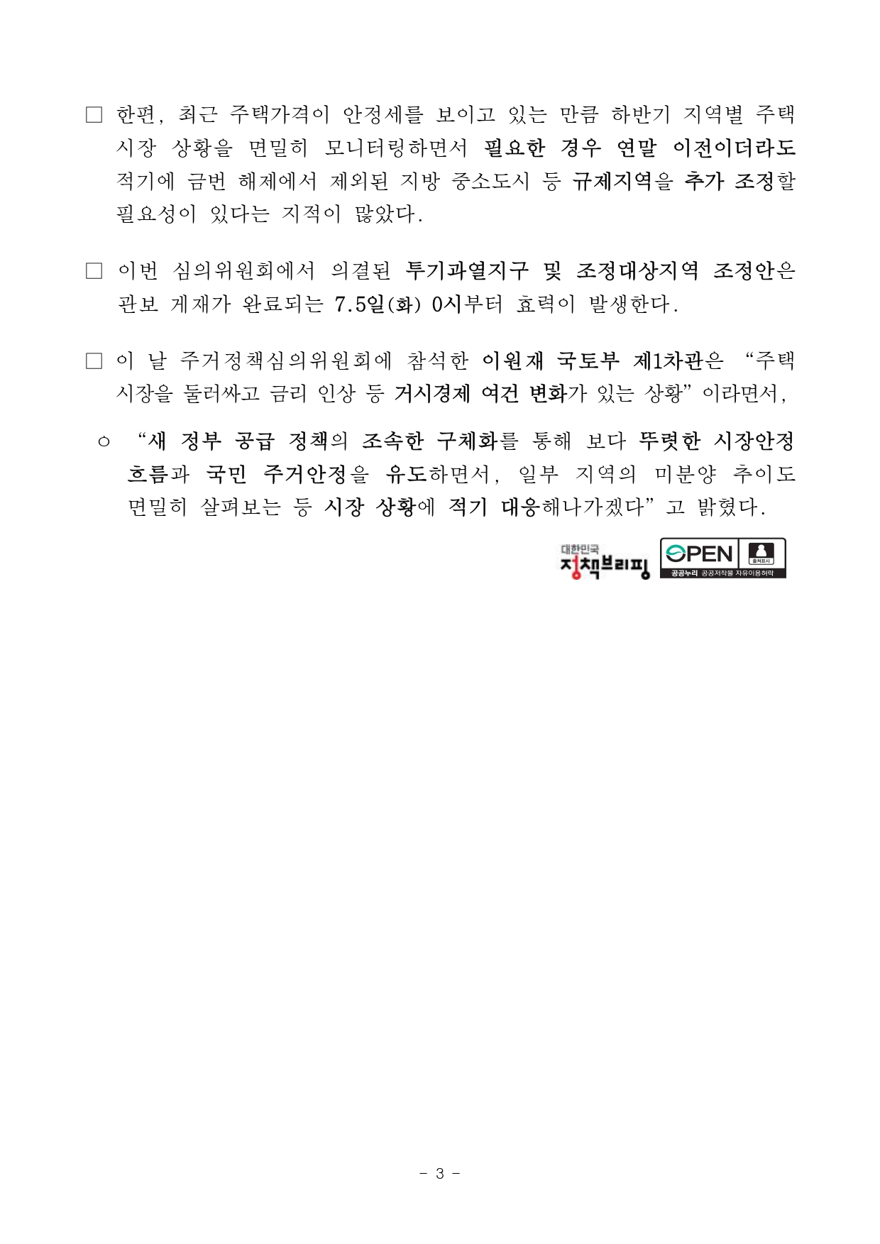 국토교통부(장관 원희룡)는 6월 30일(목) ‘22년 제2차 주거정책심의위원회를 개최하여 「투기과열지구 및 조정대상지역 조정(안)」을 심의·의결했습니다.