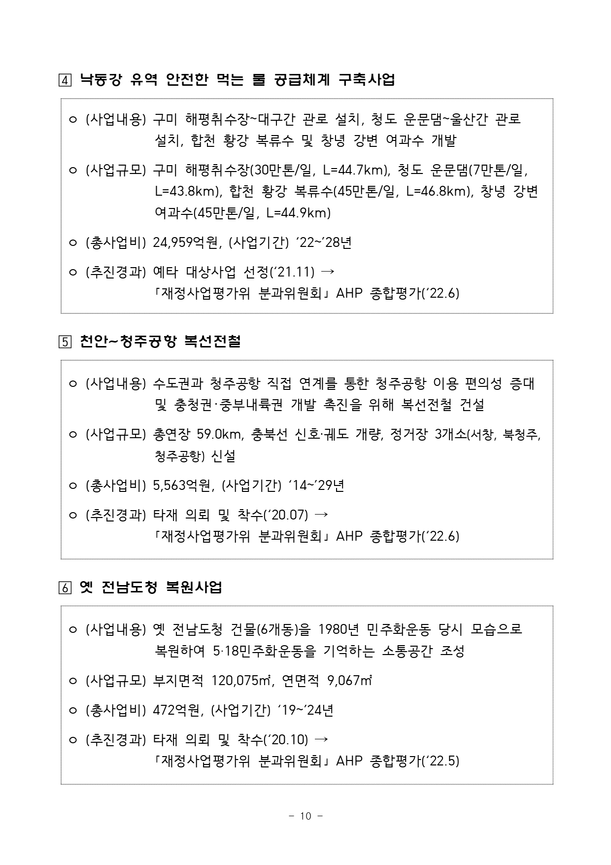 □ 천안~청주공항 복선전철 건설, 옛 전남도청 복원 등 3개 사업 타재 통과