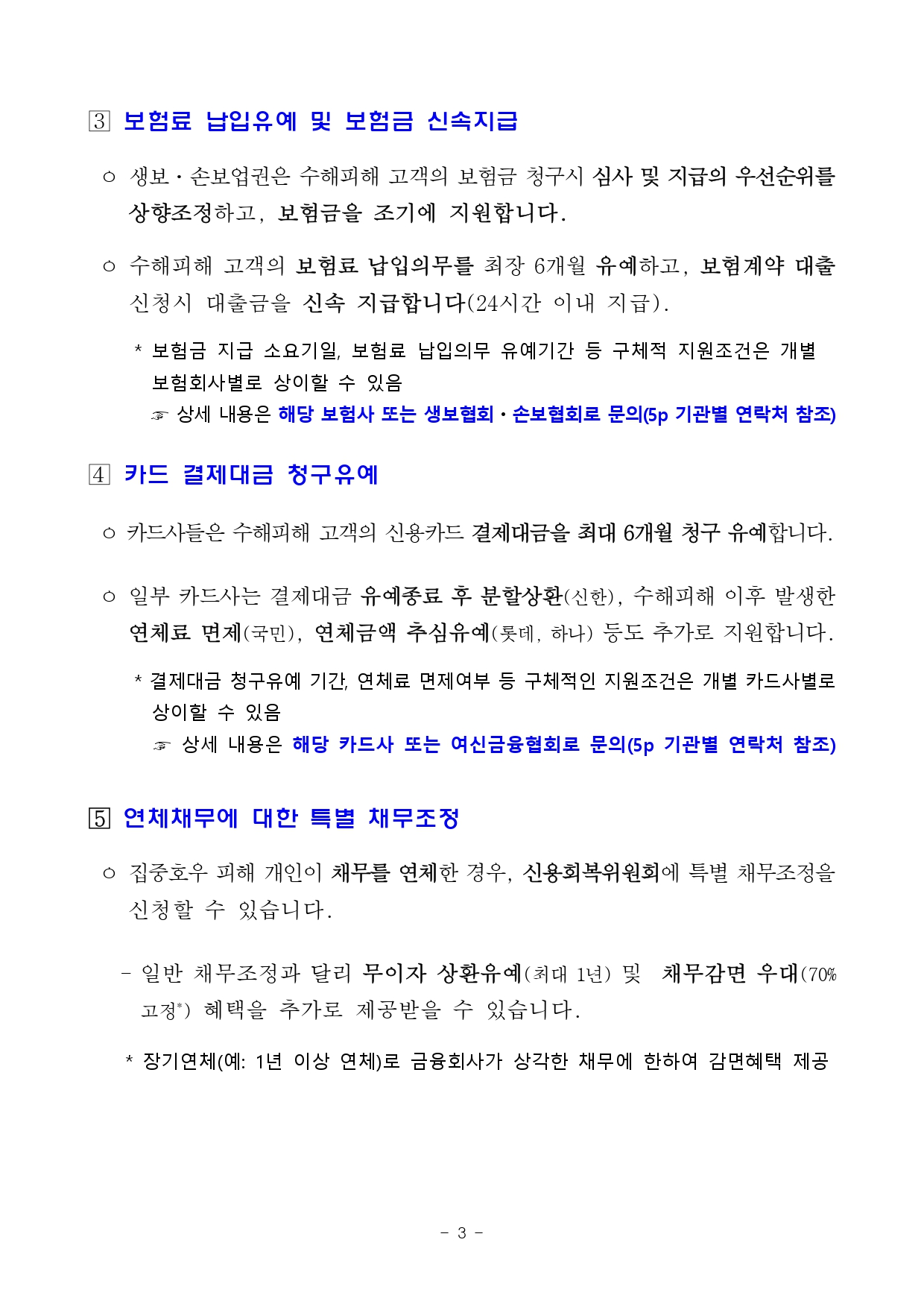 보험이나 카드 상품을 이용하고 있는 경우, 보험금 신속지급ᆞ보험료 납입유예, 카드결제대금 납입유예 등도 신청할 수 있습니다.