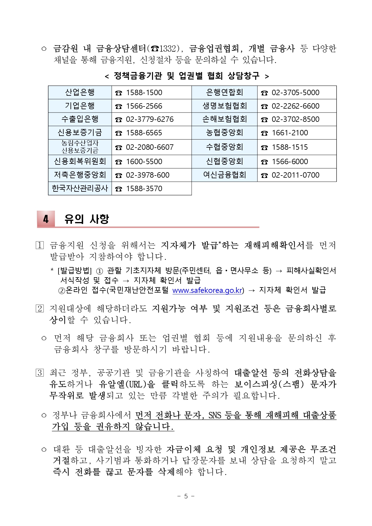 이번 집중호우로 피해를 입은 분들은 「금융상담센터」(☎1332)를 통해 신속한 상담과 지원 안내가 가능합니다.