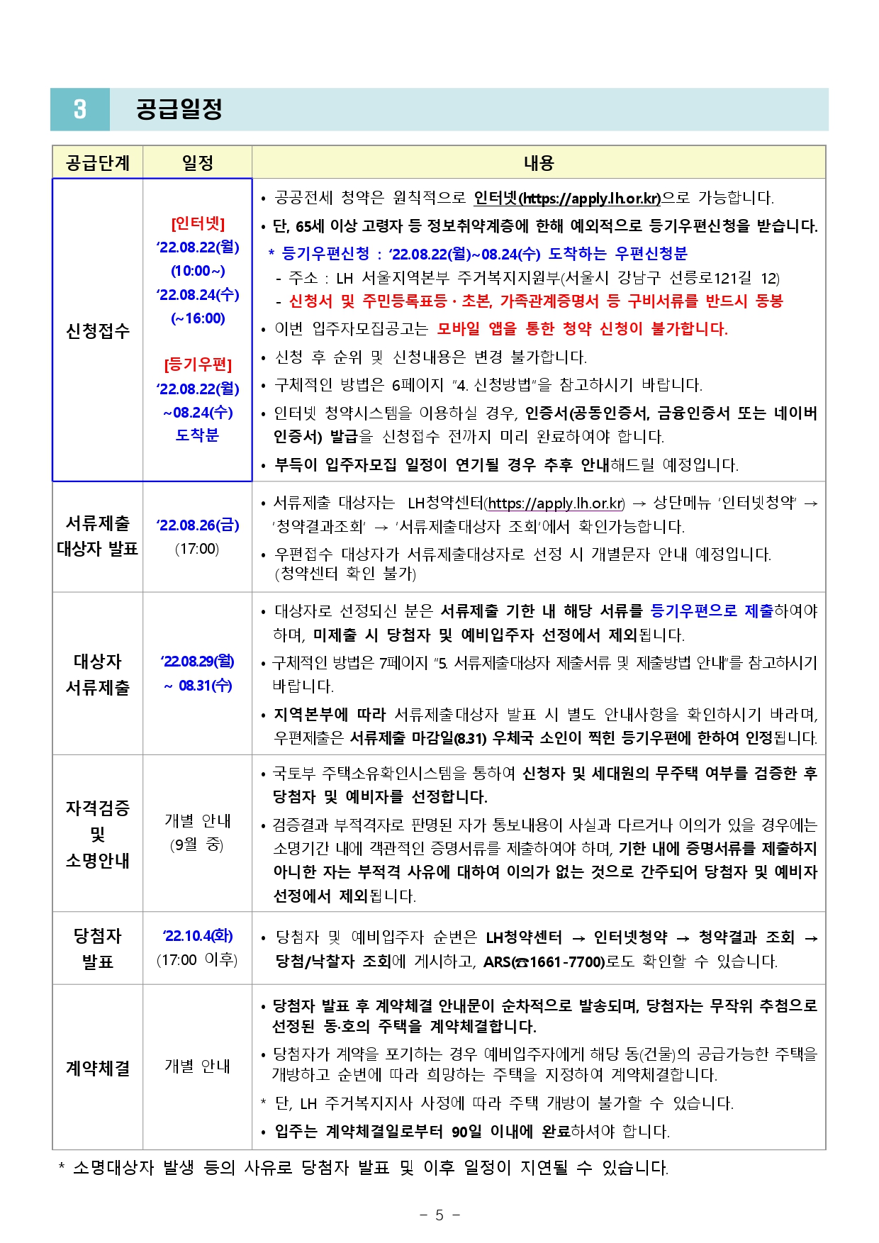 ※ 부득이 입주자모집 일정이 연기될 경우 추후 안내해드릴 예정이니 이 점 양지하시기 바랍니다.