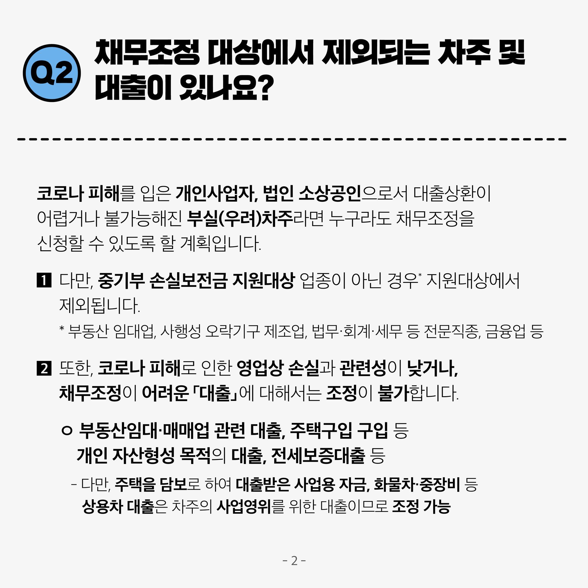 ✔ 채무조정 대상에서 제외되는 차주 및 대출이 있는지?