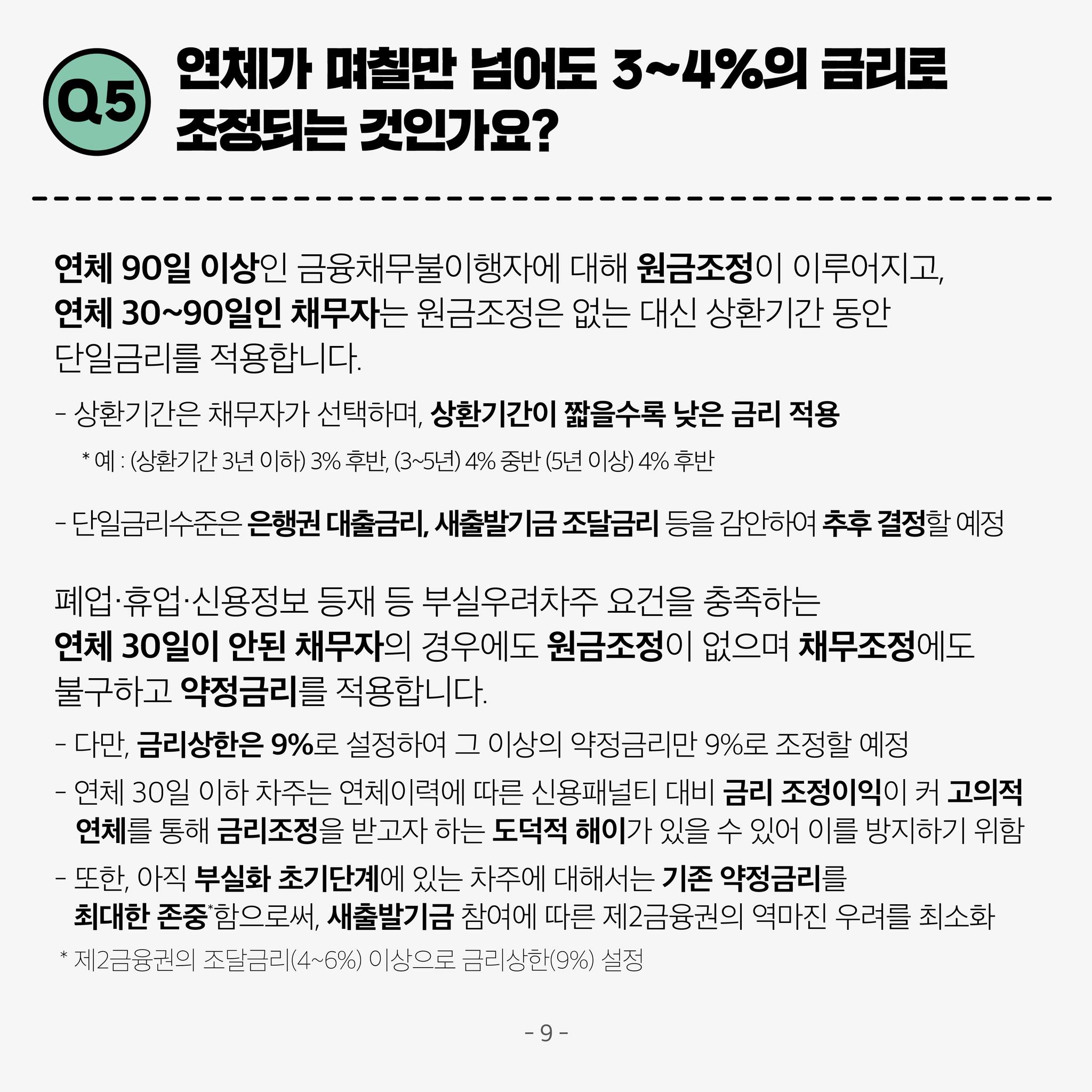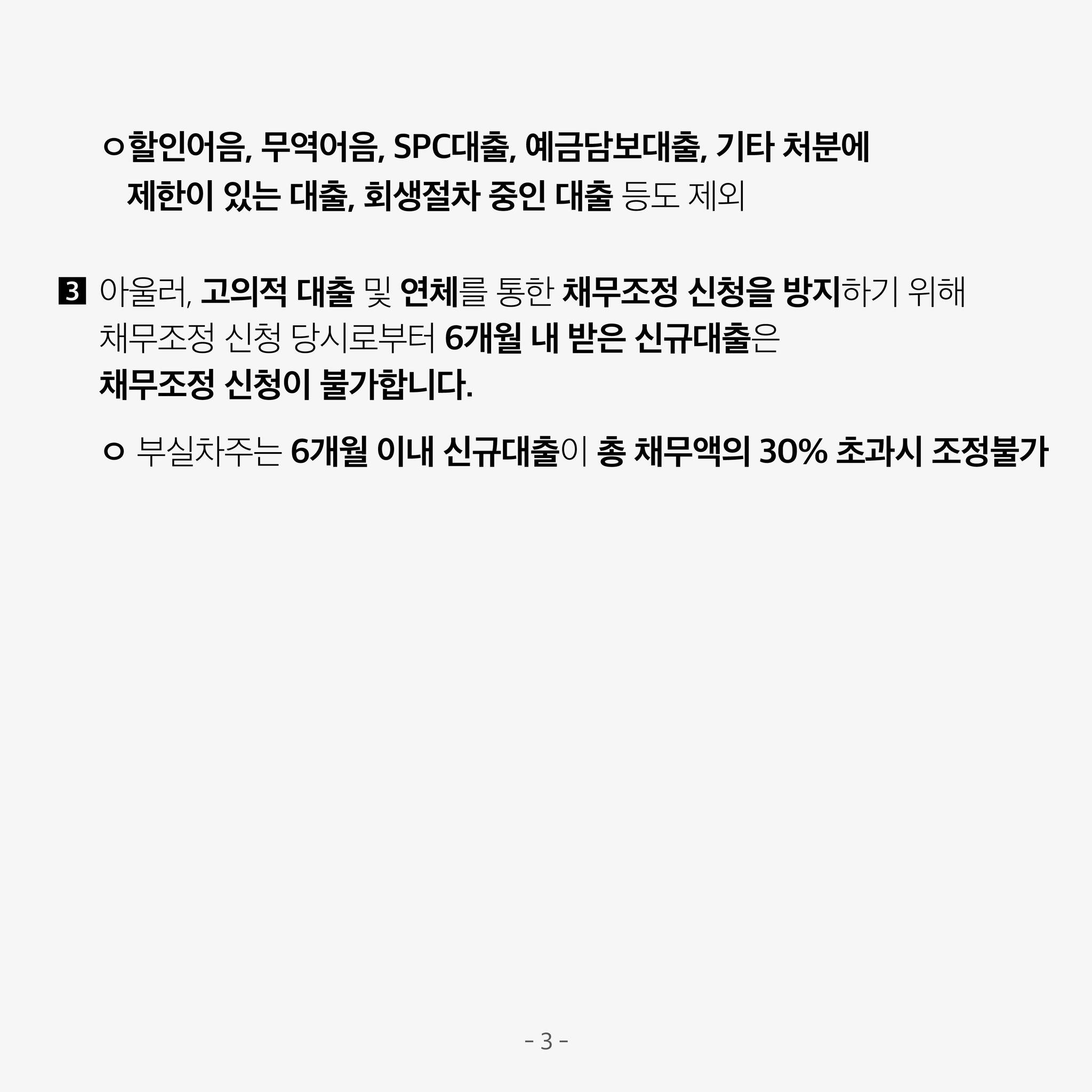 ✔ 원리금감면을 노리고 무리한 대출을 받거나 고의적으로 연체하는 등 도덕적 해이 문제가 발생할 소지는 없는가?