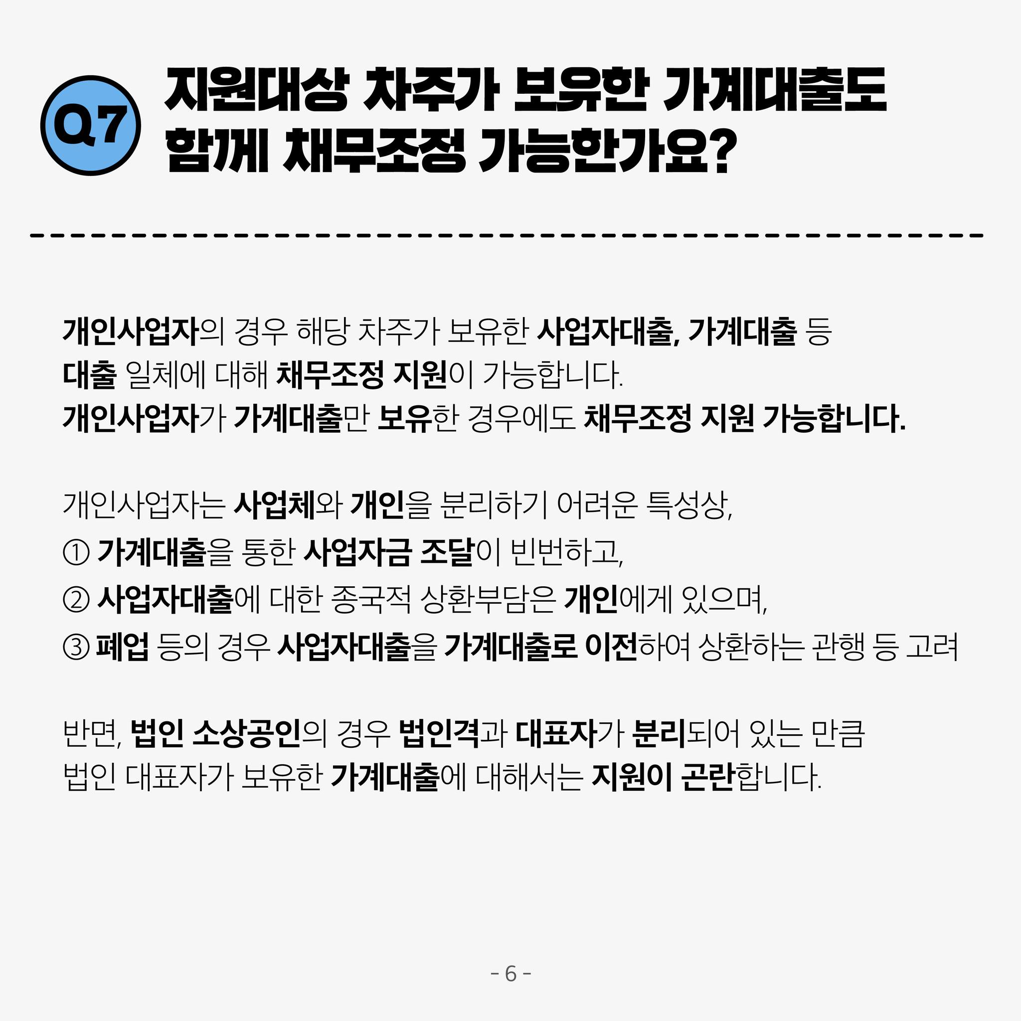 ✔ 지원대상 차주가 보유한 가계대출도 함께 채무조정 가능?