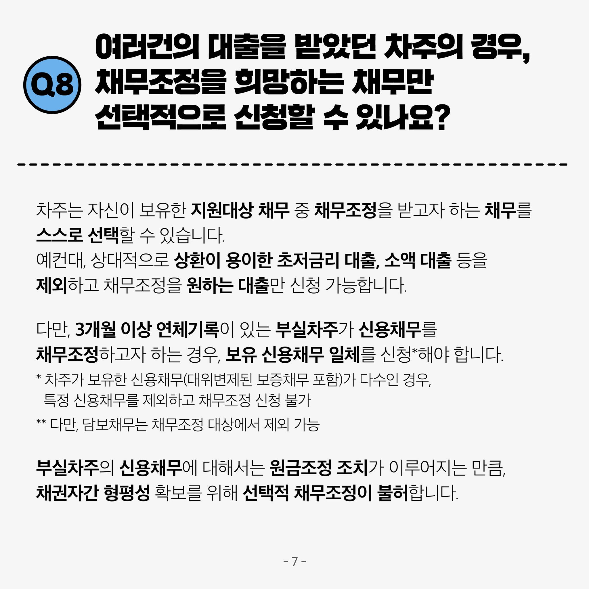 ✔ 여러건의 대출을 받았던 차주의 경우, 채무조정을 희망하는 채무만 선택적으로 신청할 수 있는지?
