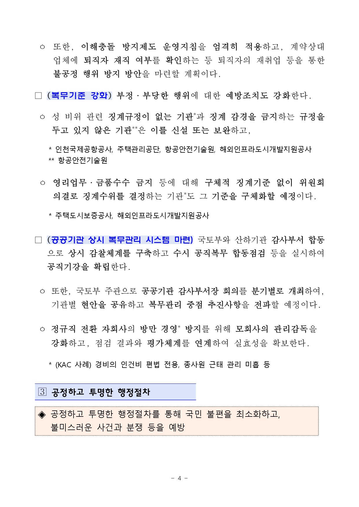 또한, 대규모 예산을 관리하면서 많은 자회사 및 출자회사(총 181개)를 보유하고 있는 만큼 퇴직자의 재취업 등을 통한 이권 관계 형성의 가능성도 상존하고, 최근 발생한 부동산 유관 기관의 부동산 투기, 교통 담당기관의 안전의식 부재에 따른 잦은 사고발생 등으로 국민의 비판을 초래했다.