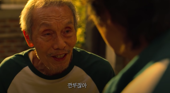 내가 출연한 부분은 싱거울 정도로 짧게 지나갔습니다. 내친김에 후반부도 보게 됐는데 바로 깐부 할아버지의 인터뷰가 있었습니다. MBC <뉴스데스크>의 형태를 흉내 내어 방송인 유재석 씨와 걸그룹 러블리즈의 멤버 미주 씨가 앵커 역할을 맡고 오영수 씨가 초대 손님으로 참석했습니다.