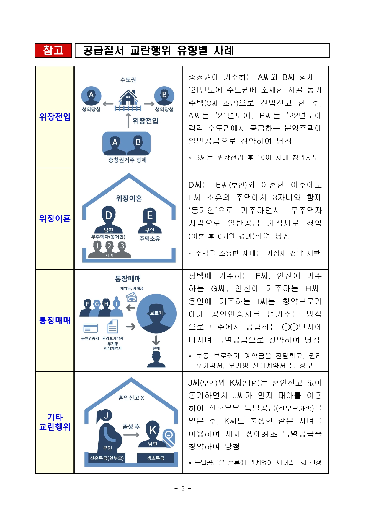 주택 공급질서 교란행위로 적발된 주요 유형을 보면 다음과 같다.