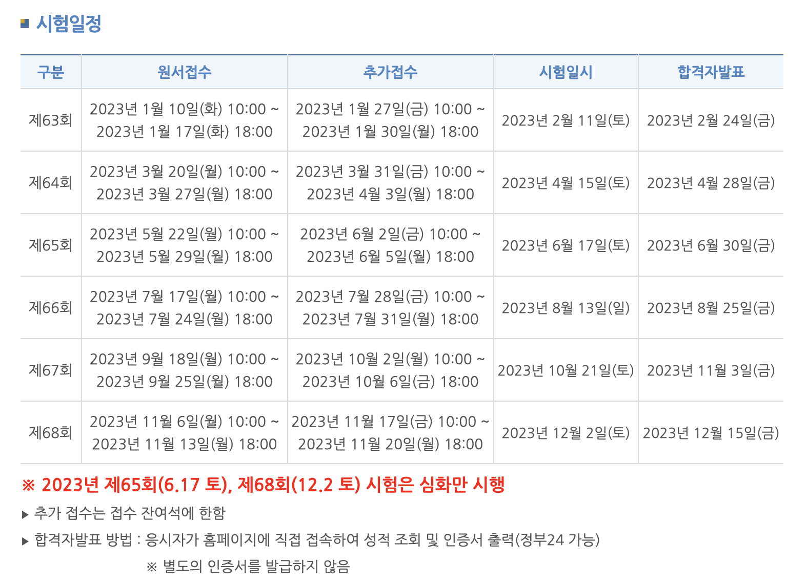 2023 한국사능력검정시험 일정 및 접수기간 안내입니다.