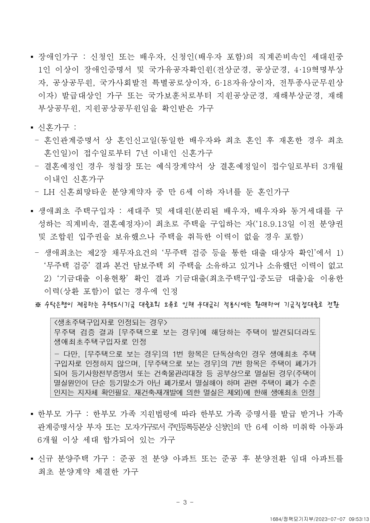 - 5억원(신혼 · 2자녀 이상 가구 6억원) 이하 공부상 주택