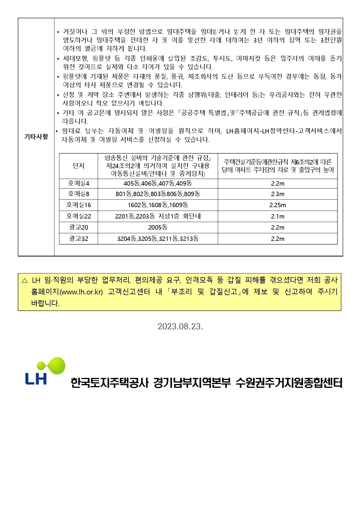 ▪ 이 주택의 예비입주자 모집공고일은 2023.08.23(수)이며, 이는 입주자격과 예비입주자 선정과정에서 경쟁이 있을 때 적용하는 순위 및 배점의 판단 기준일이 됩니다.
