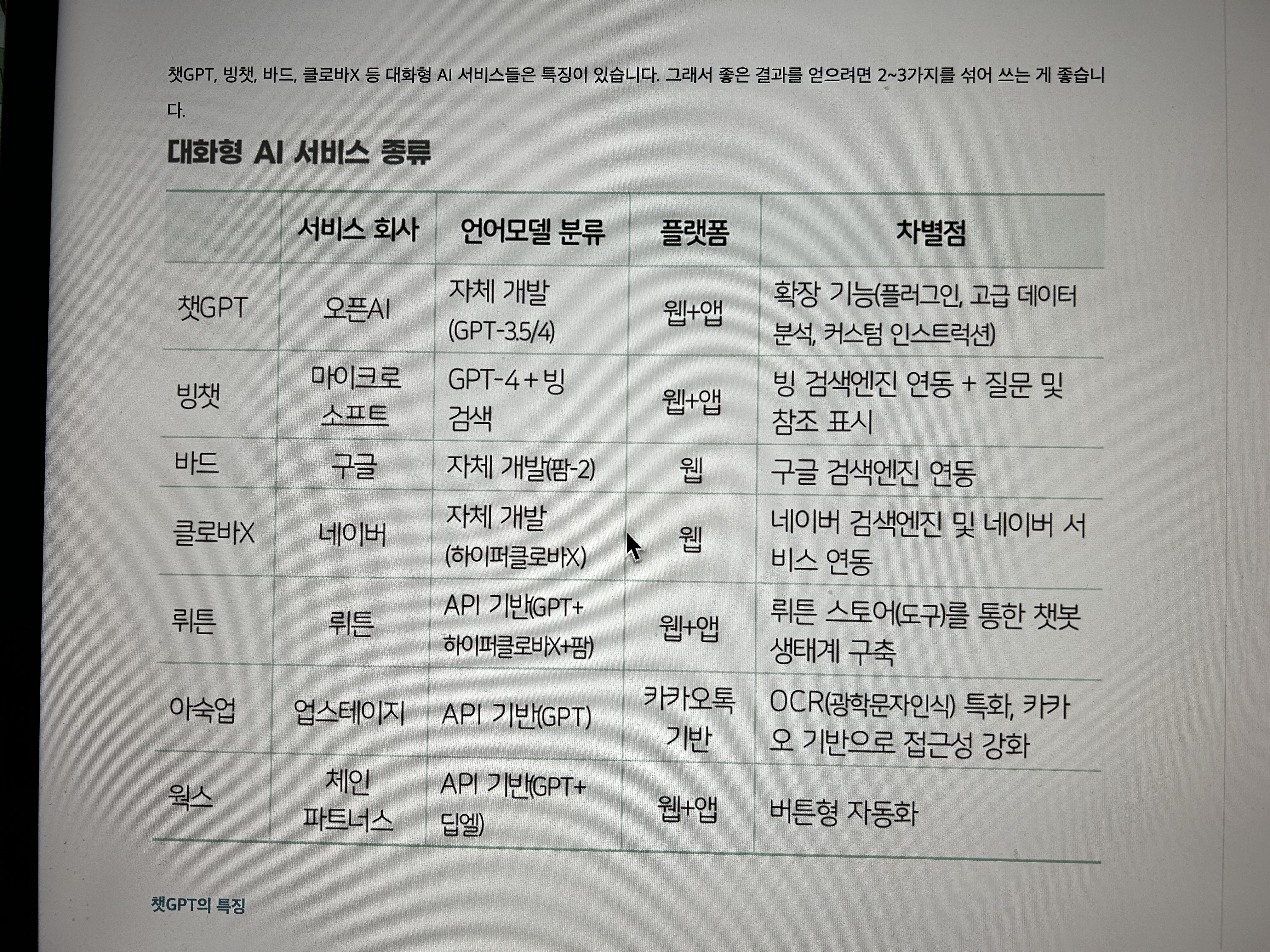 대화형 AI서비스 모음. 챗GPT, 빙챗, 바드, 클로바X 등 다양한 AI서비스가 출시됐다.